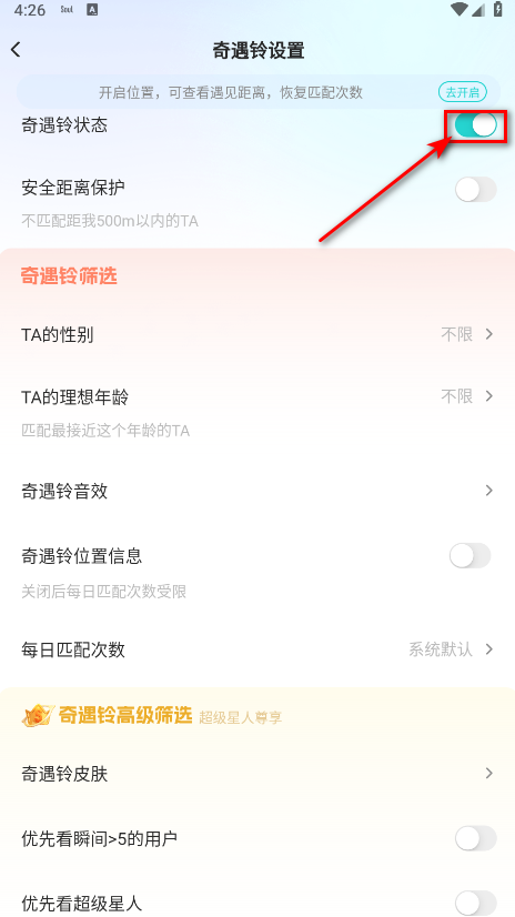 3、将奇遇铃功能关闭。