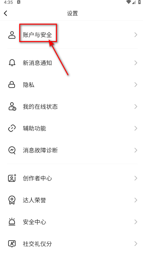 3、点击账户与安全。