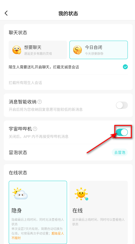 7、关闭宇宙哔哔机功能。