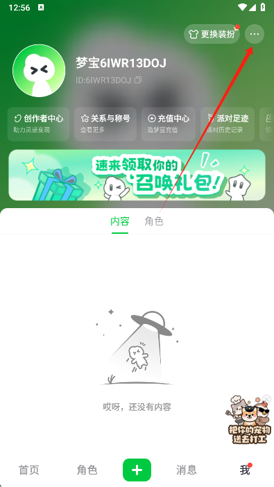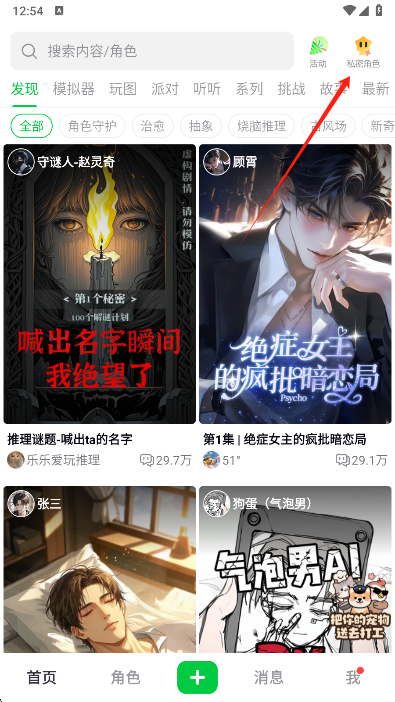 1、打开软件后,点击界面右上角的“我的私密角色”入口;