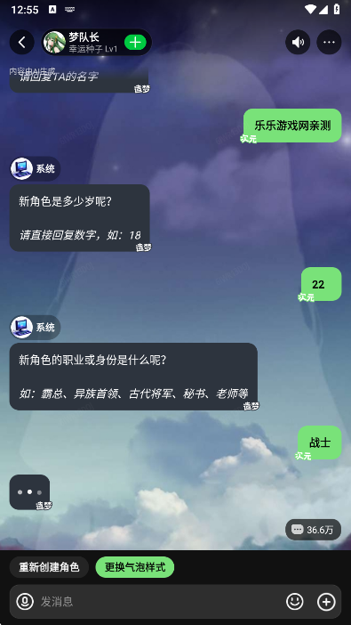 3、通过回答系统问题的方式,逐步描述出你理想中的聊天伙伴形象;