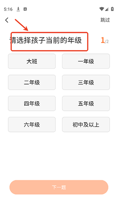 2、之后按提示选择孩子当前所处的年级,以及之前读过的相关书籍;
