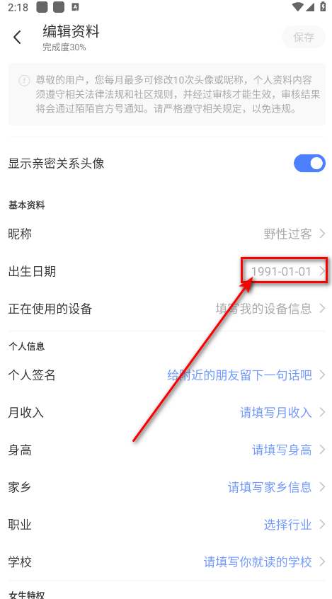 3、调整出生年月日设置