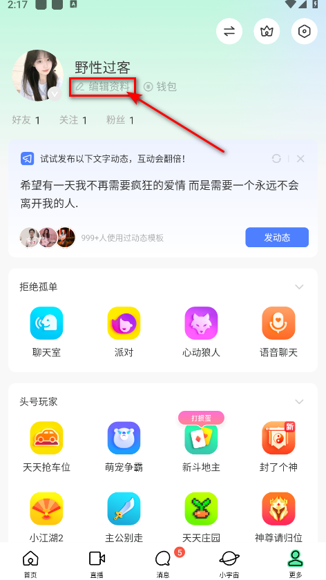 1、首先进入个人资料编辑页面