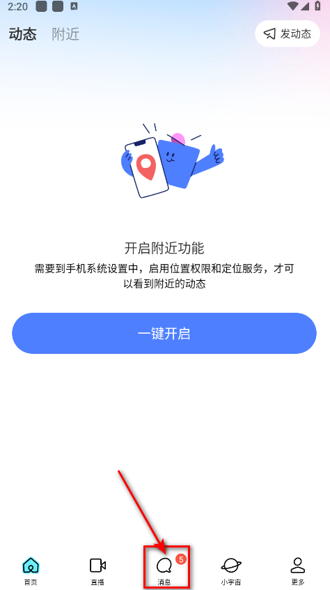 1、打开应用后点击消息界面
