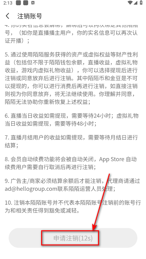 5、等待系统读秒结束后点击申请注销