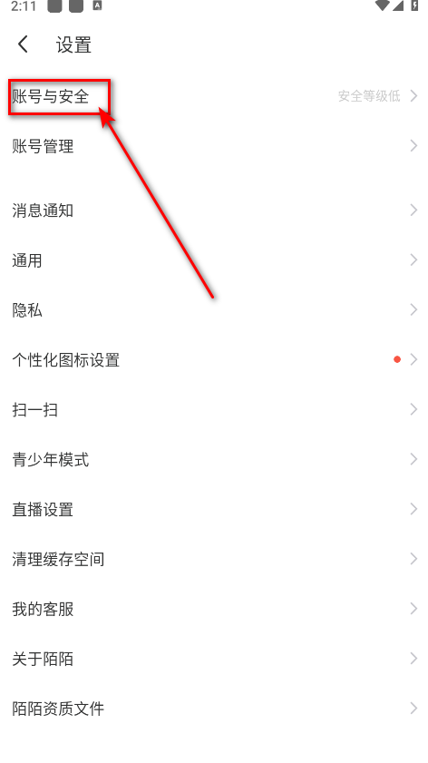 3、进入设置后选择账号安全功能