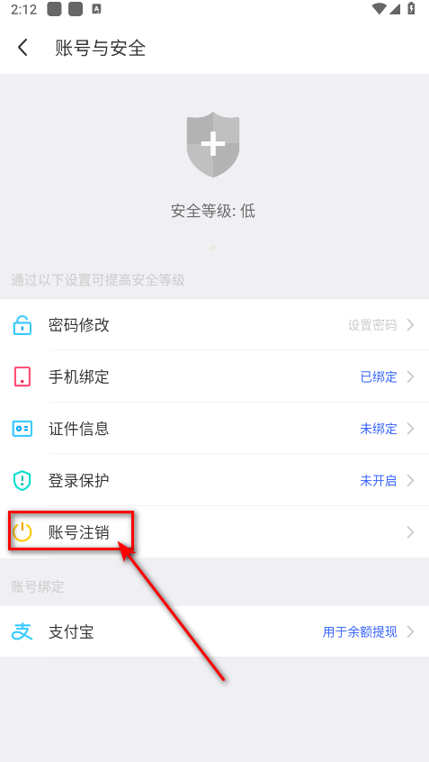 4、在账号安全页面即可看到账号注销入口