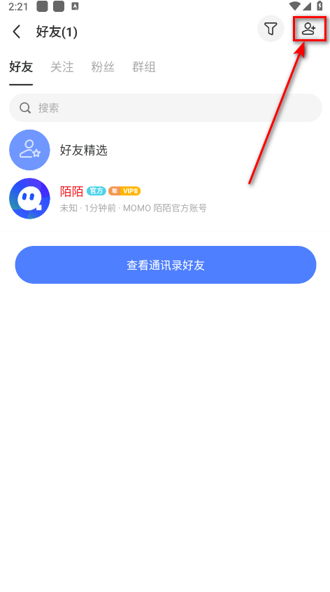 3、点击用户页面右上角的加号图标