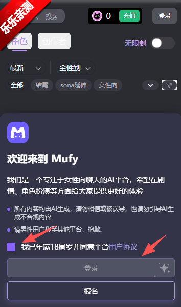mufy ai聊天官方下载最新版本2025是一款专为女性用户设计的免费AI虚拟角色聊天平台,它提供无限制且高自由度的对话环境,没有敏感词屏蔽或表达限制,大家可以自由自在地交流;同时,你还可以根据个人喜好创建专属的AI聊天角色,丰富整体的聊天体验,感兴趣的朋友欢迎来本站下载尝试。