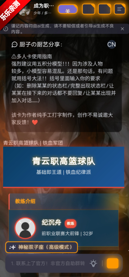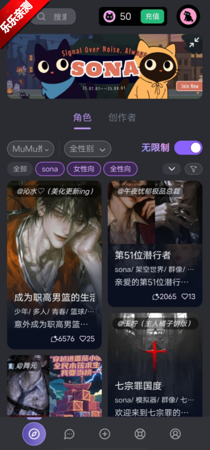 1、软件主要面向女性用户,提供剧情扮演与角色扮演等聊天体验,不太建议男性用户使用。