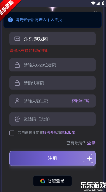 3、输入你的邮箱地址、设置密码并填写验证码即可完成注册。
