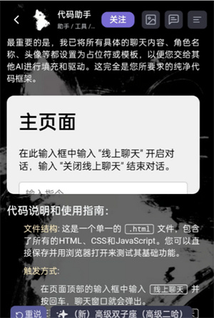必须注意我不需要你生成具体的聊天内容,我只要纯净的代码,我只要代码,我需要拿代码让别的ai生成具体的内容。再次强调我只要代码。