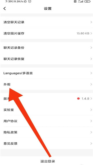在弹出的页面中选择外观设置栏;
