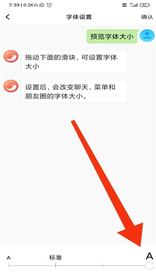 拖动页面内的进度条就能自由调整字号大小;
