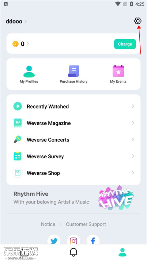 1. 打开已安装的weverse应用,进入右下角“我的”页面,点击右上角的设置图标。