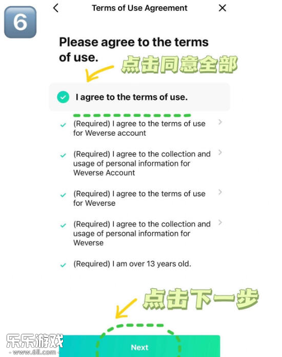 6. 阅读并同意所有用户条款,点击Next继续。