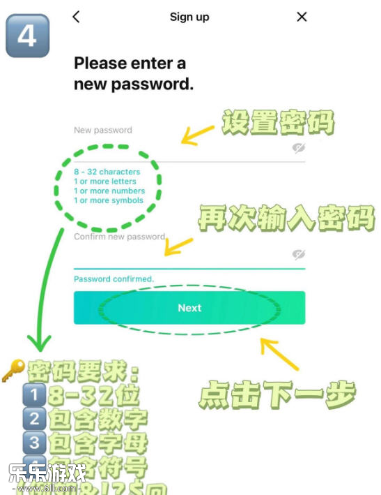 4. 设置登录密码并再次确认,注意需符合密码要求,完成后点击Next。