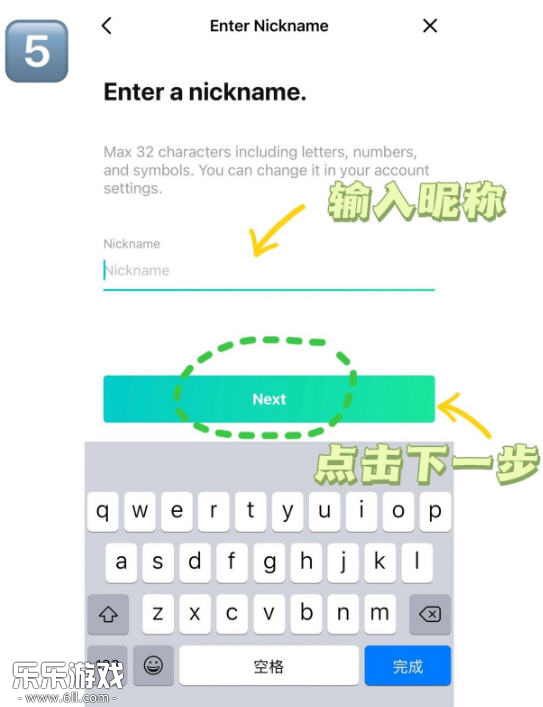 5. 输入一个未被使用的昵称,系统验证通过后点击Next进入下一步。