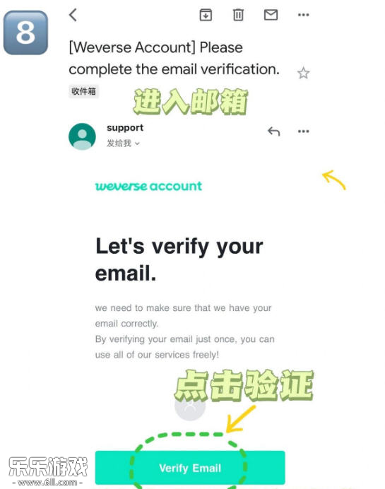 8. 登录邮箱查收邮件,点击邮件中的Verify Email链接完成验证;返回应用即可使用账号登录。