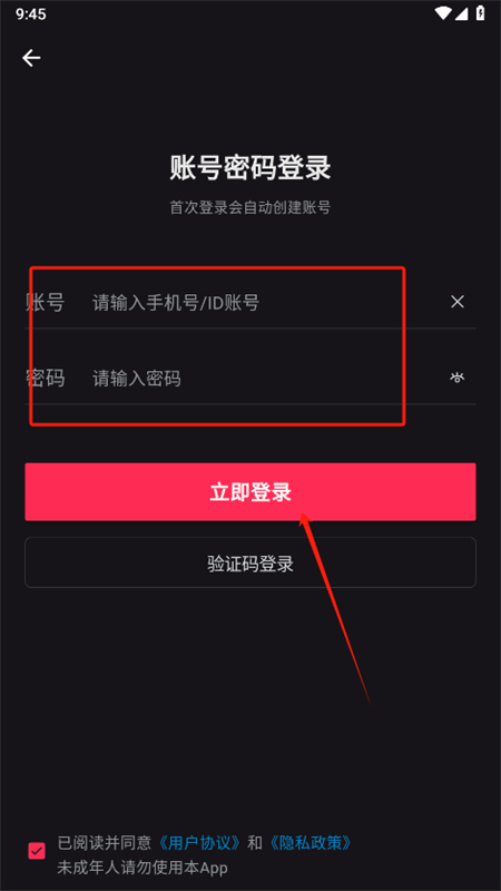 3、也可以直接使用账号与密码进行登录。