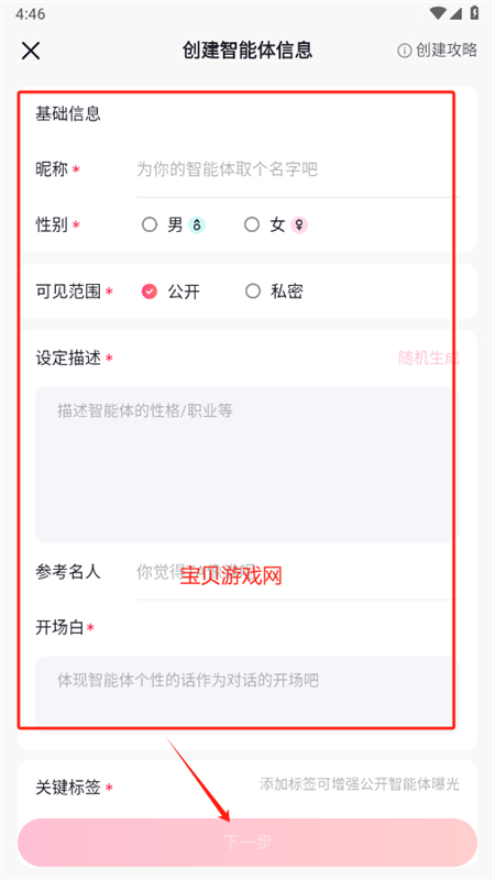 3、按照指引填写智能体的基本信息,完成后点击下一步即可成功创建您的专属智能体。