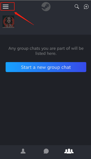 打开手机上的Steam Chat应用,在首页左上角找到菜单入口。
