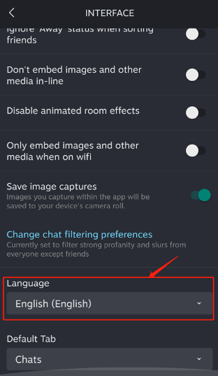 接着你会看到“language”选项,点击旁边的下拉按钮进行选择。