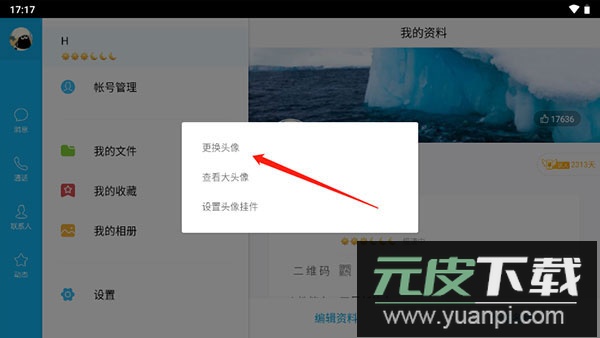 3、在弹出选项中选择“更换头像”;