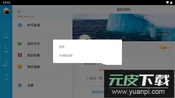 4、可以从相册选取图片或直接拍照作为新头像;