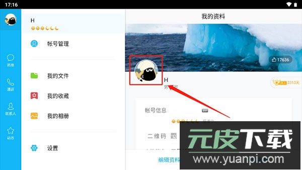 1、打开qq hd版应用,登录账号后点击界面左上角的头像;