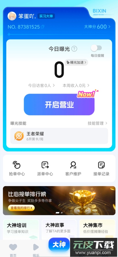 1、首先下载并打开比心陪玩app,完成注册与登录流程;