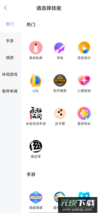 4、从列表中选择你擅长的游戏或其他可提供的技能类别;