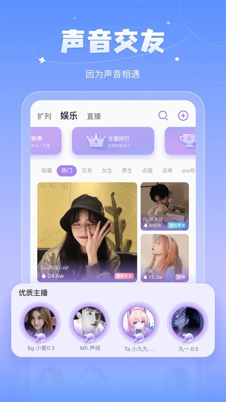 1、专注语音社交与休闲游戏场景,打造年轻化声音交友空间;