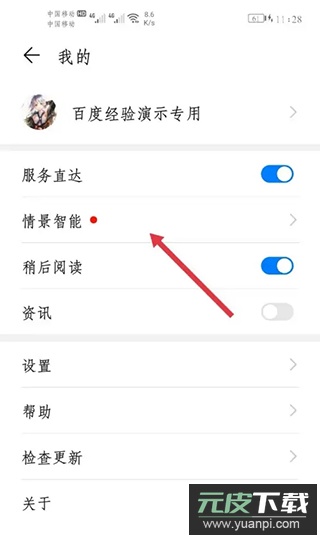 2、进入个人页面后,找到并选择“情景智能”选项。