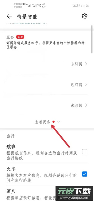 3、在情景智能界面中,点击“服务”栏目下方的“查看更多”。