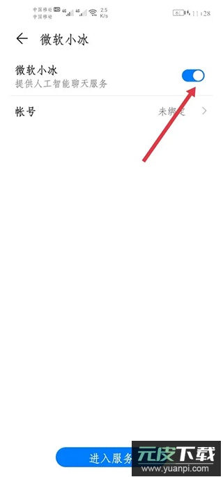 5、进入微软小冰服务页面,将其关闭即可完成虚拟男友的删除。