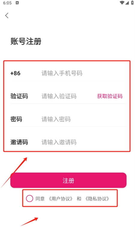 3、跳转至注册页面后,依次填写手机号码、接收验证码,并设置登录密码即可完成注册。