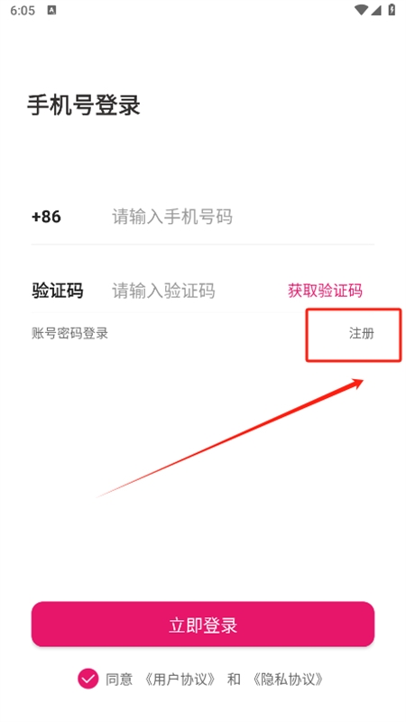2、启动软件进入登录界面,点击页面下方的注册选项;