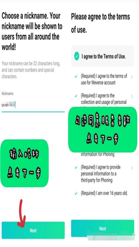 然后输入个人昵称,阅读并勾选同意相关条款协议。