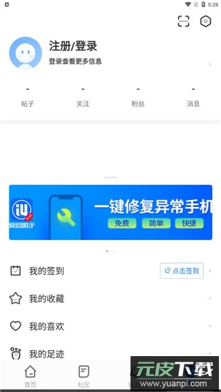 4、点击我的页面,可完成注册或登录,管理个人资料、查看收藏记录等。