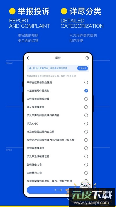 3.监管体系健全:设有细致的举报投诉分类,配合明确的社区规则与全面监督机制,努力维护优质健康的创作氛围。