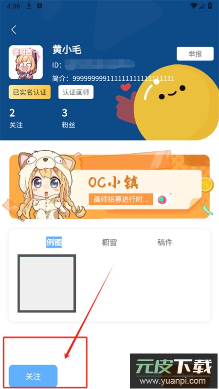 4、在查找页搜索画师名称,关注喜欢的创作者;