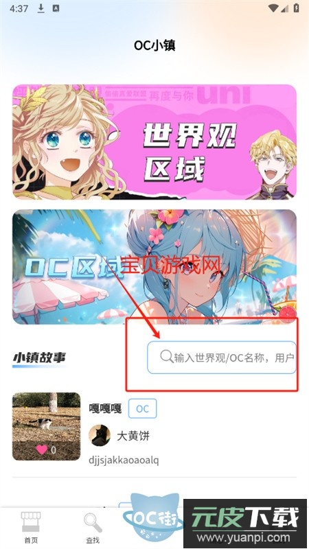 5、进入OC街页面,可通过世界观、OC名称或用户名进行搜索查询。