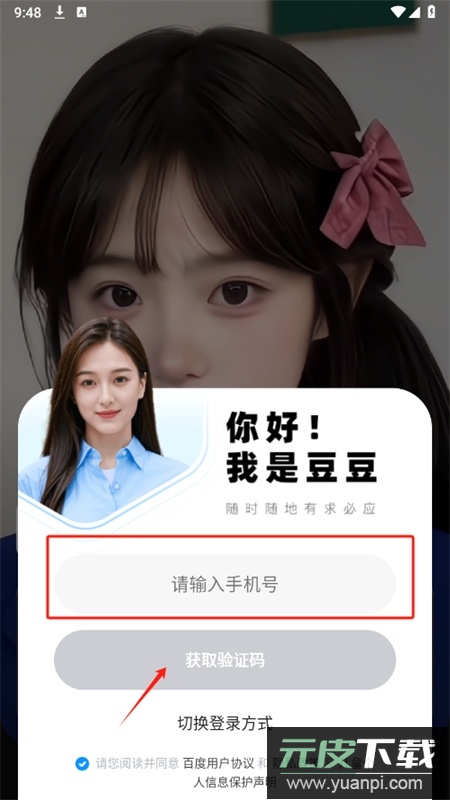 2、输入手机号码,获取验证码即可快速登录;