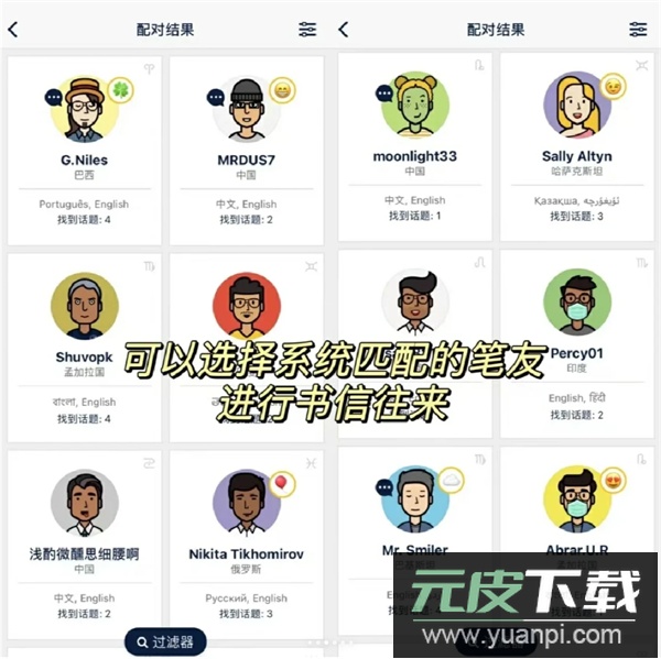 系统能依据个人选择的兴趣话题和使用的语言,自动为你推荐可能产生共鸣的笔友,有效拓宽交友圈。