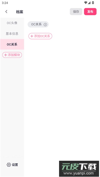 5、添加角色与其他角色之间的关系,将多个原创角色相互联结,最终点击右上角发布完成创建。