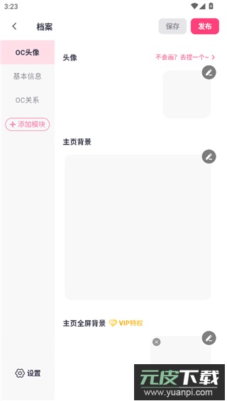 3、进入档案编辑页,为角色设定头像与主页背景图;
