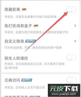 4. 在隐私管理中找到“隐藏距离”开关,点击启用即可完成位置隐藏。