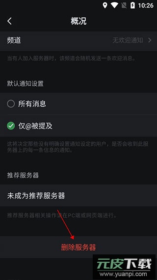 2、在概况界面下滑,点击删除服务器即可